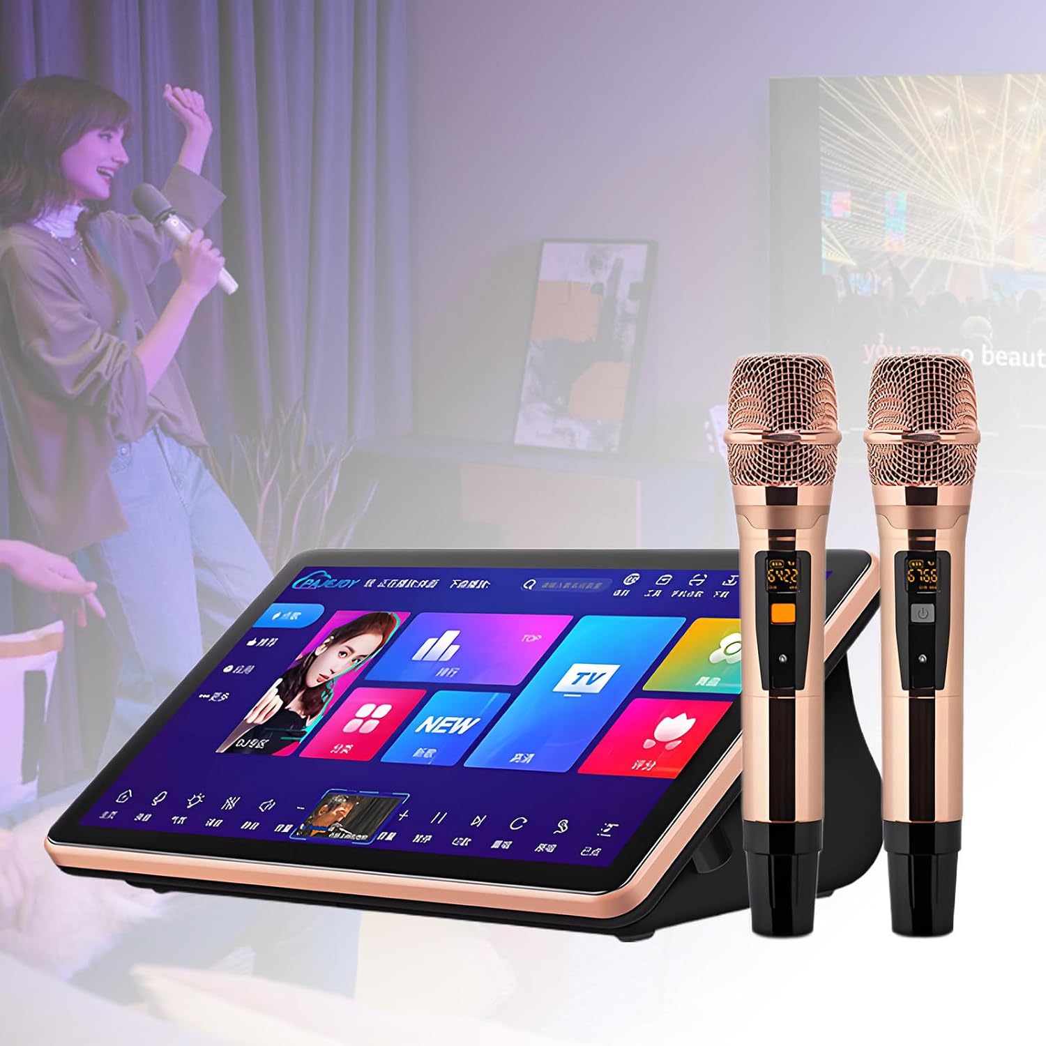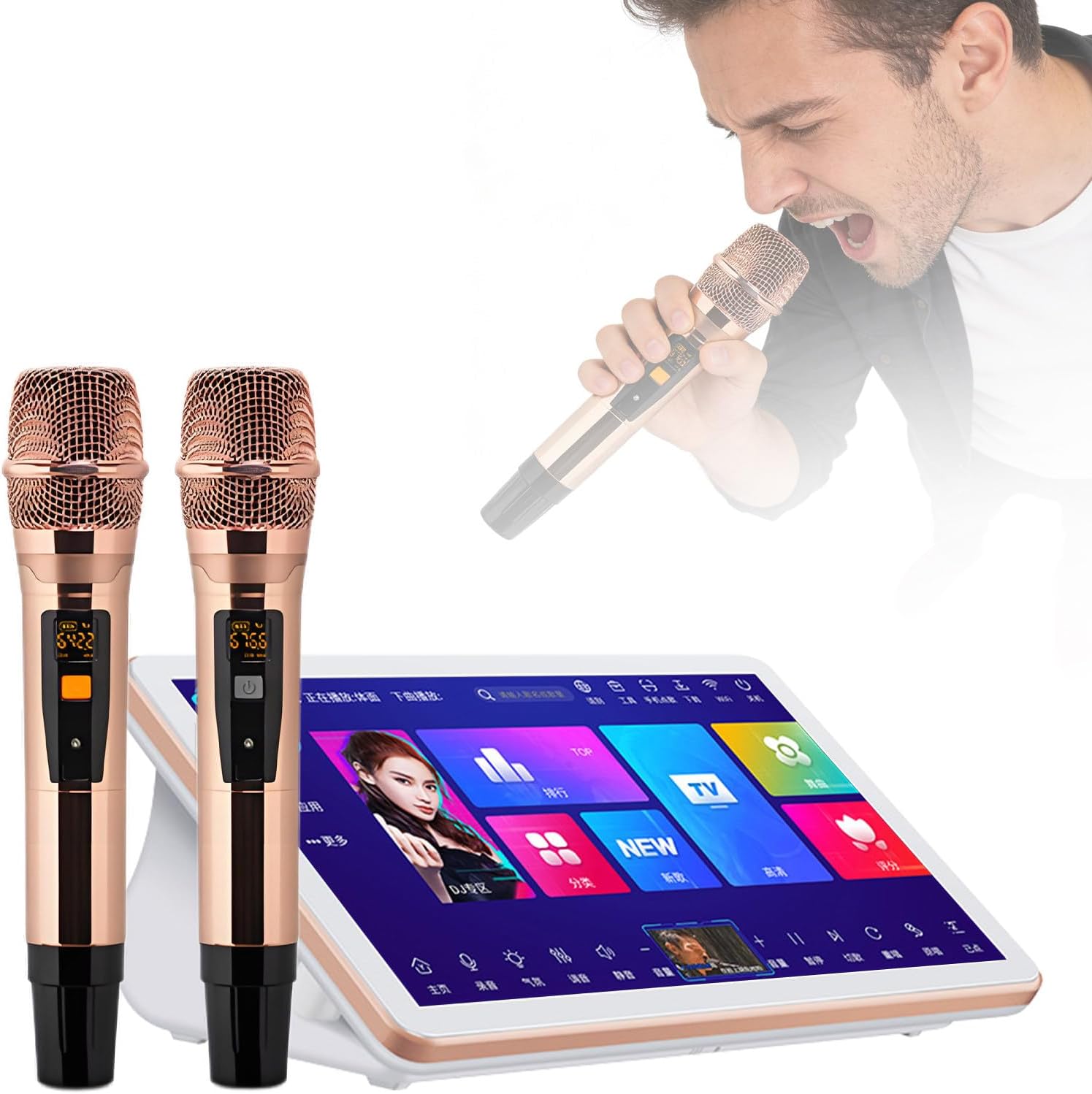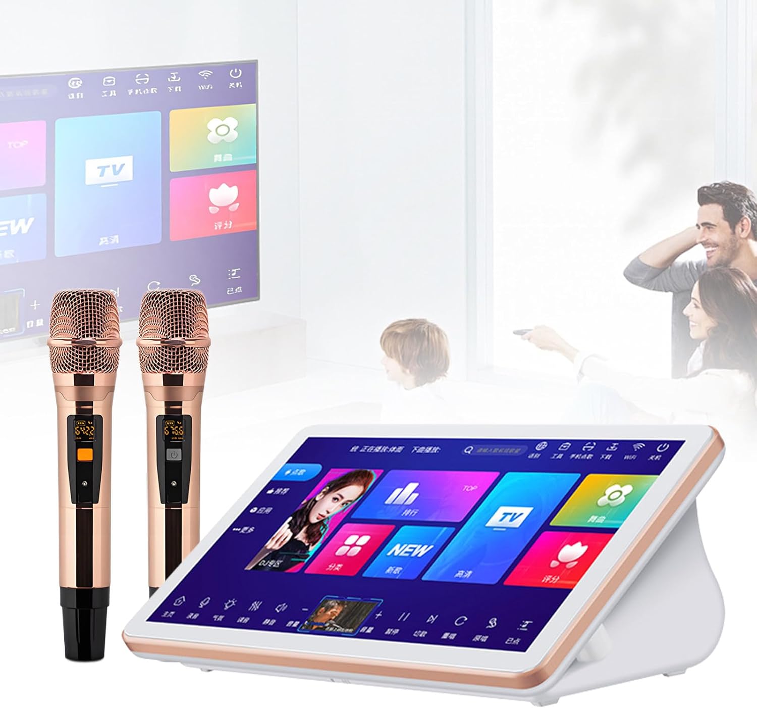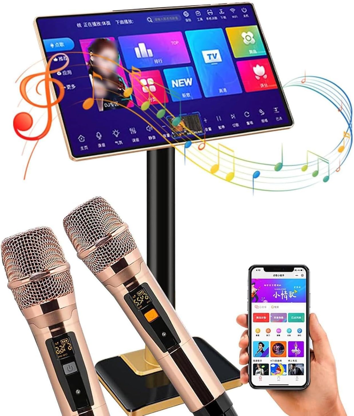 Sistemas de Karaoke Chino con Pantalla táctil de 18,5", Equipado con 2 micrófonos inalámbricos, reproducción, Ideal para reuniones en casa y Canto KTV. B-4T