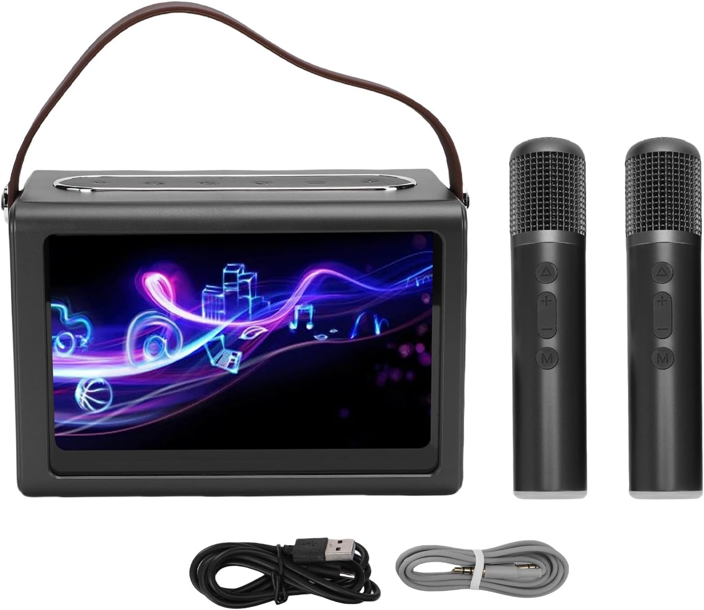 Generic Máquina de Karaoke con Micrófonos Inalámbricos Duales y Función de Visualización de Letras para Reuniones Familiares, 5.4 Portátil para Eventos Al Aire Libre